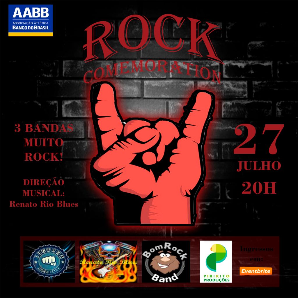 A AABB está recheada de eventos e esse fim de semana não poderia ser diferente, além de todos os eventos que iram rolar teremos também no sábado 27/07 às 20h o Rock Comemoration!