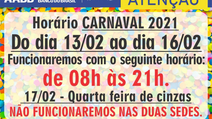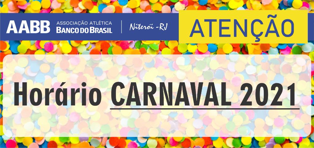 Em 22 de janeiro de 2020 o Prefeito Axel Grael publicou o Decreto 13.876/2021 determinando a proibição de qualquer evento carnavalesco na cidade entre os dias 12 e 17 de fevereiro. Em função da pandemia de COVID-19, informamos que a AABB Niterói NÃO vai fazer nenhuma atividade específica no carnaval. E vai abrir nos dias e horários mencionados no cartaz, com as mesmas atividades autorizadas, de acordo com todos os protocolos divulgados.