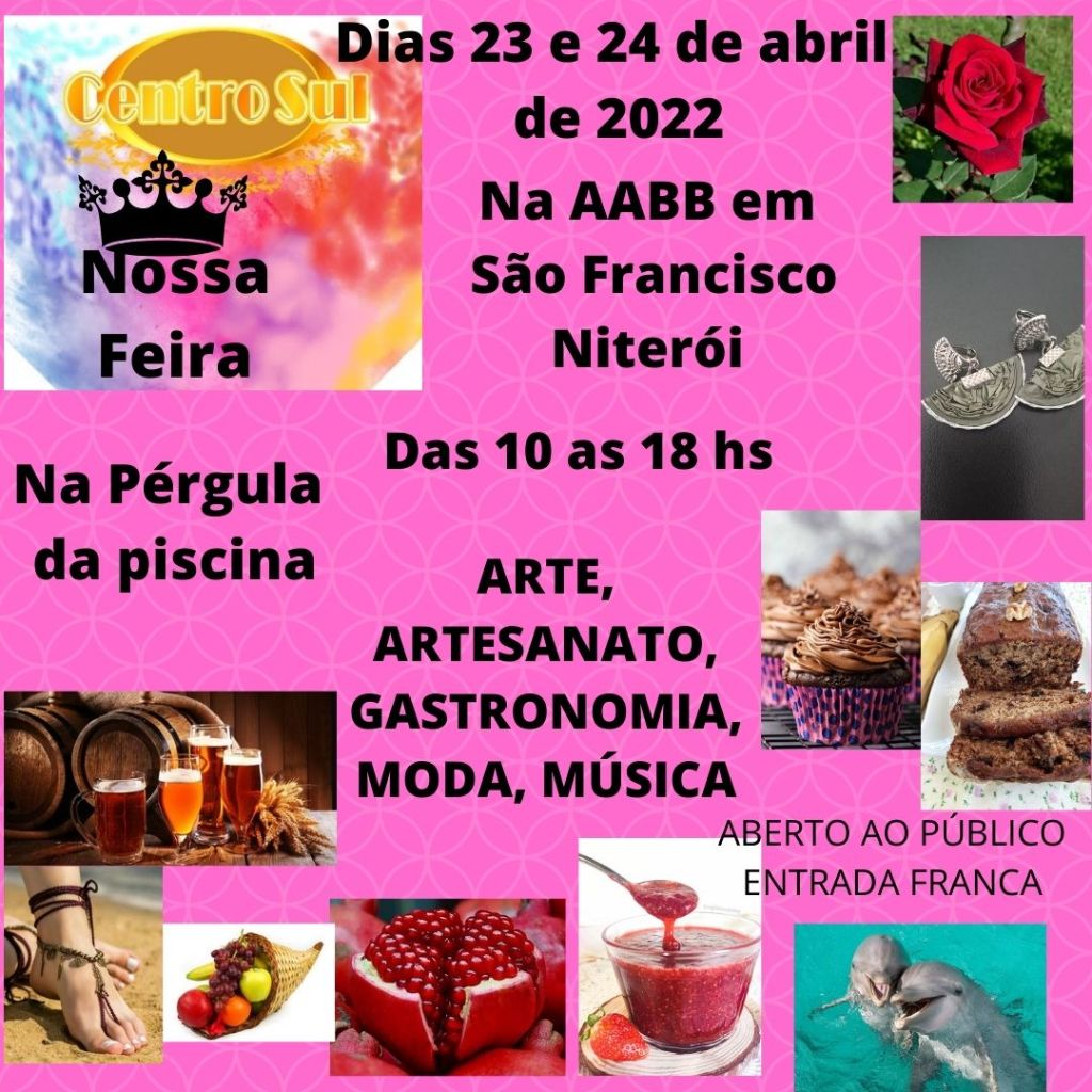 Nos dias 23 e 24 de abril, das 10h às 18h. Feira de Artesanato, gastronomia, moda e Música. Na sede da AABB em São Francisco, rua Hélio da Silva Carneiro, 78.