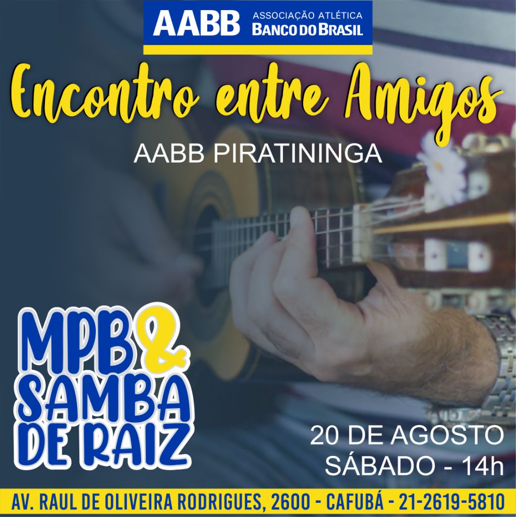 MPB & SAMBA DE RAIZ AGITAM A TARDE DESTE SÁBADO, DIA 20, A PARTIR DAS 14h, NA AABB PIRATININGA.