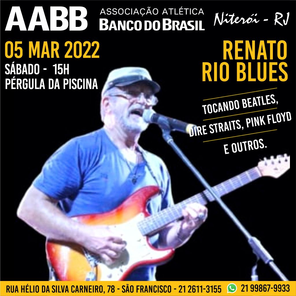 Amanhã, sábado, dia 05 de Março, a partir das 15h a AABB Niterói oferece aos seus associados e convidados música ao vivo na Pérgula da Piscina com Renato Rio Blues!